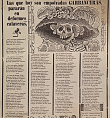 La calavera literaria es una composición en verso tradicional en México. Suelen escribirse en vísperas del Día de los muertos.Antiguamente conocidos como panteones, estos versos nacieron en el siglo XIX a modo de epitafio burlesco y como modo de expresar ideas o sentimientos que en otras oportunidades sería difícil decir. Fueron frecuentemente censurados o destruidos por la policía en la época colonial, ya que, por lo dicho anteriormente, también servían como medio para expresar descontento con los políticos de la época. Las primeras calaveras impresas fueron publicadas en 1849, en el periódico El Socialista, de Guadalajara.